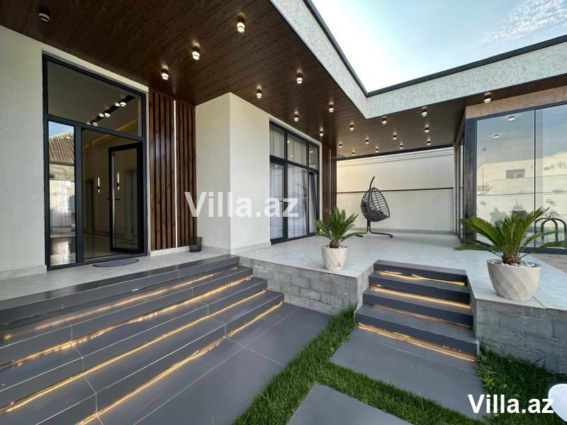Mərdəkan qəsəbəsində, keçmiş makaron fabriki tərəfdə yeni villa satılır. 1 mərtəbəli 5 otaqlı modern ev 5 sot torpaq sahəsində inşa edilib. 200 m2 yaşayış sahəsinə malikdir. Qonaq otağı, 4 yataq otağı, 2 sanitar qovşağı. Həyətyani sahədə hovuz, yay qış mətbəxi, terras. Su, qaz, elektrik daimi. Sənədlər qaydasında.