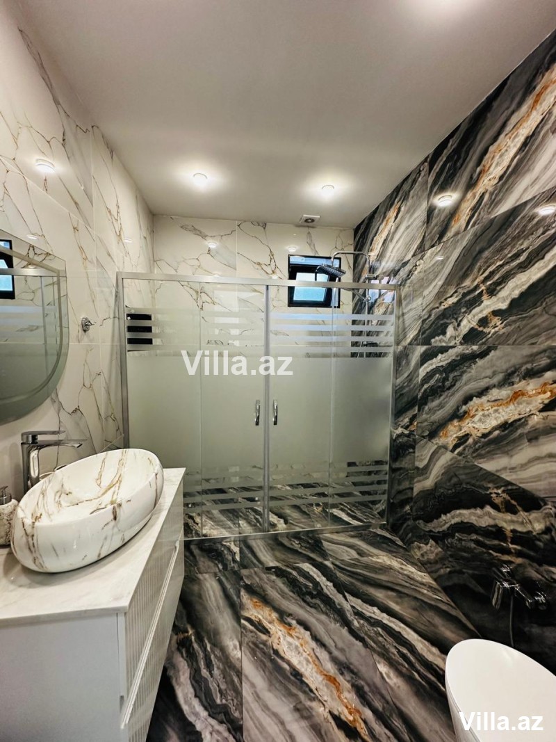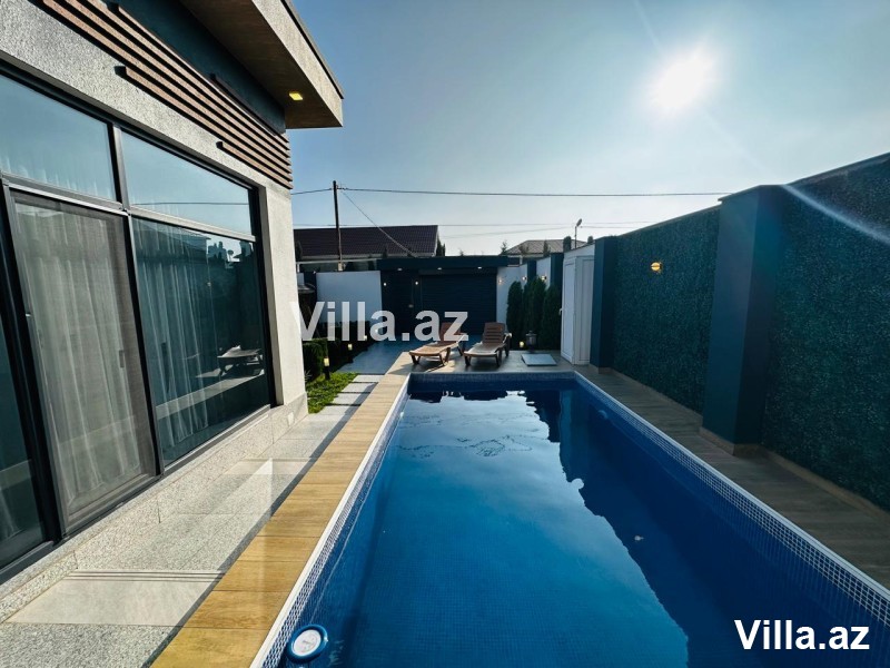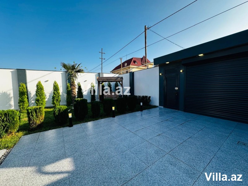 Həyətində hovuz, manqal yeri, yay–qış istifadə üçün bisetka, əlavə sanuzel, dekorativ ağaclar və distansion idarə olunan darvaza var. Qaz, işıq və su daimidir.