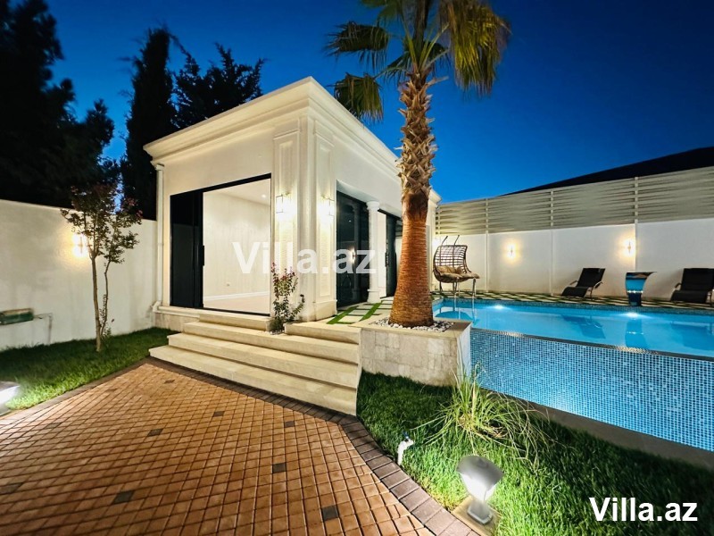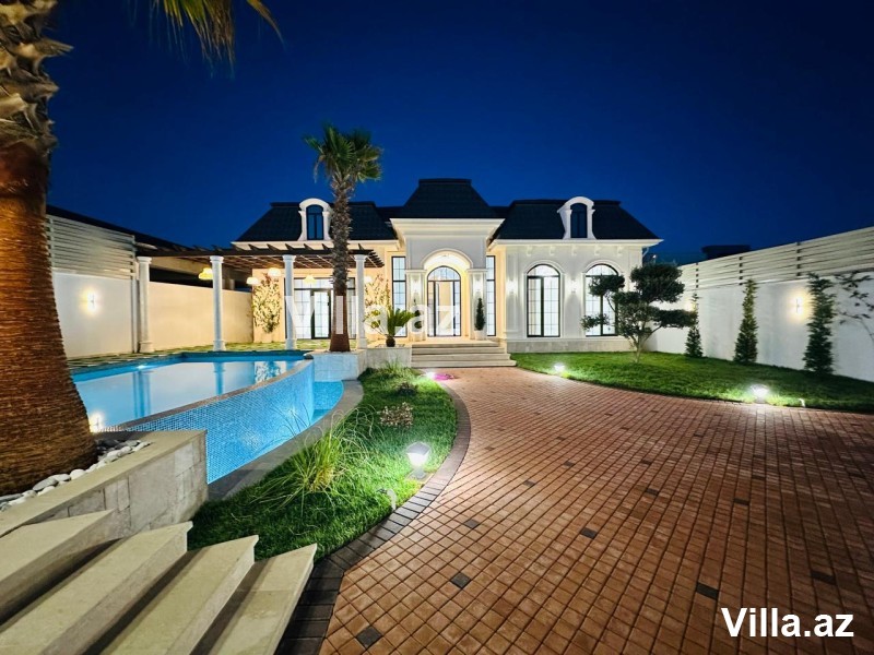 1 mərtəbəli 5 otaqlı villa 700 m2 torpaq sahəsində inşa edilib. 200 m2 yaşayış sahəsi, Qonaq otağı, mətbəx, 4 yataq otağı, 3 sanitar qovşağından ibarətdir. Həyətyani sahədə hovuz, besedka, yaşıllıq zolağı mövcuddur. Su, qaz, elektrik daimi. Sənədlər qaydasında.