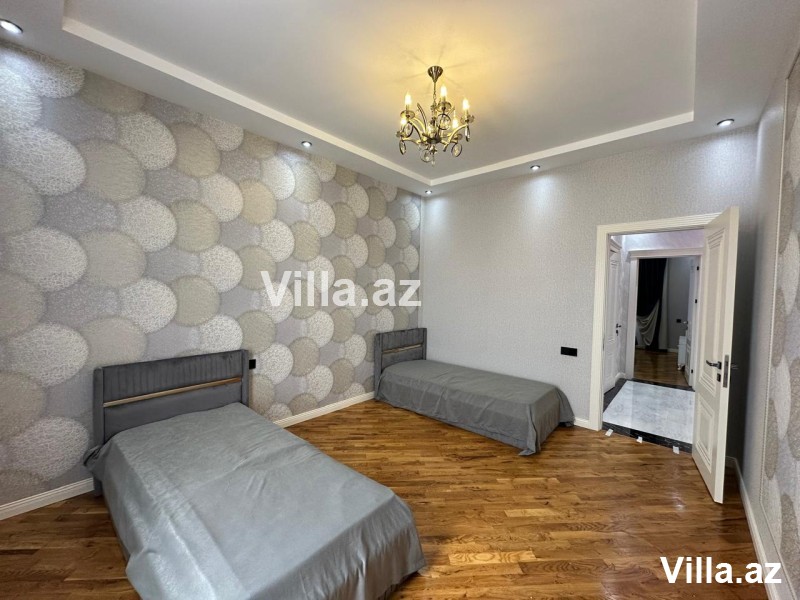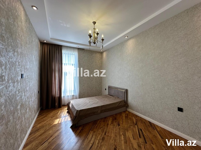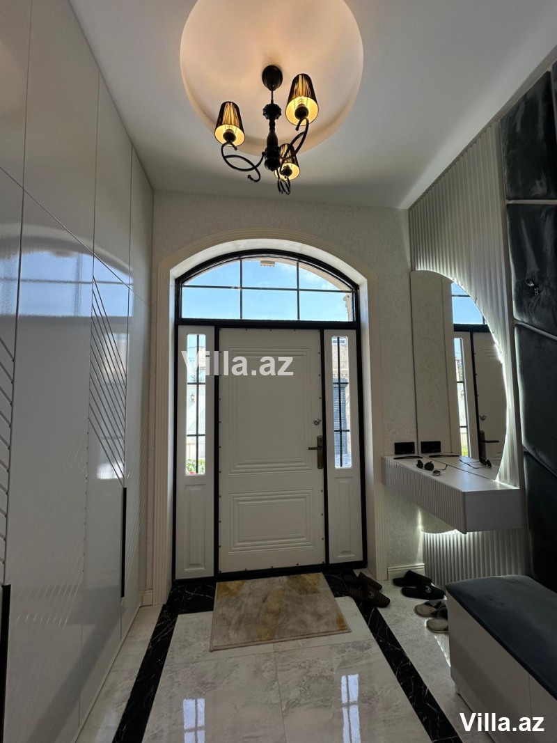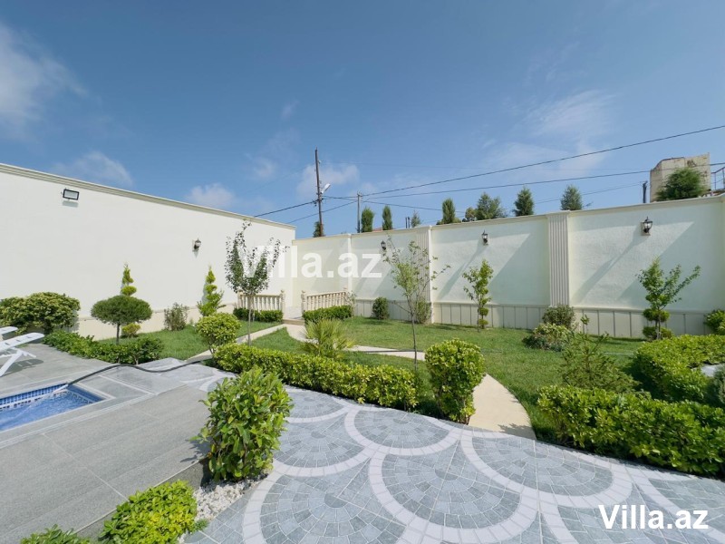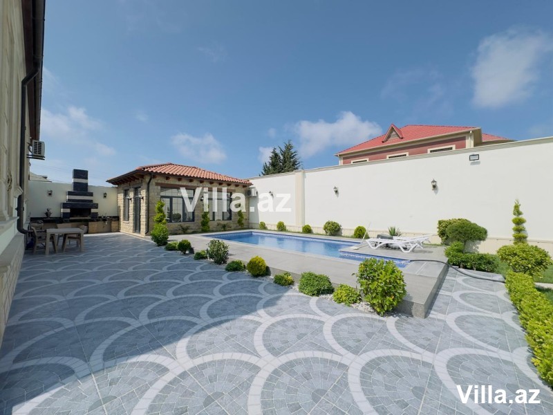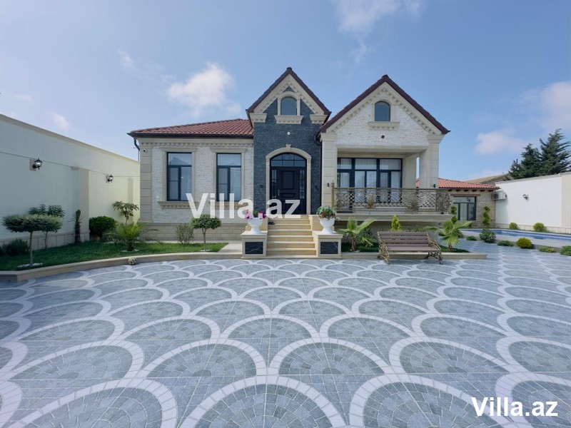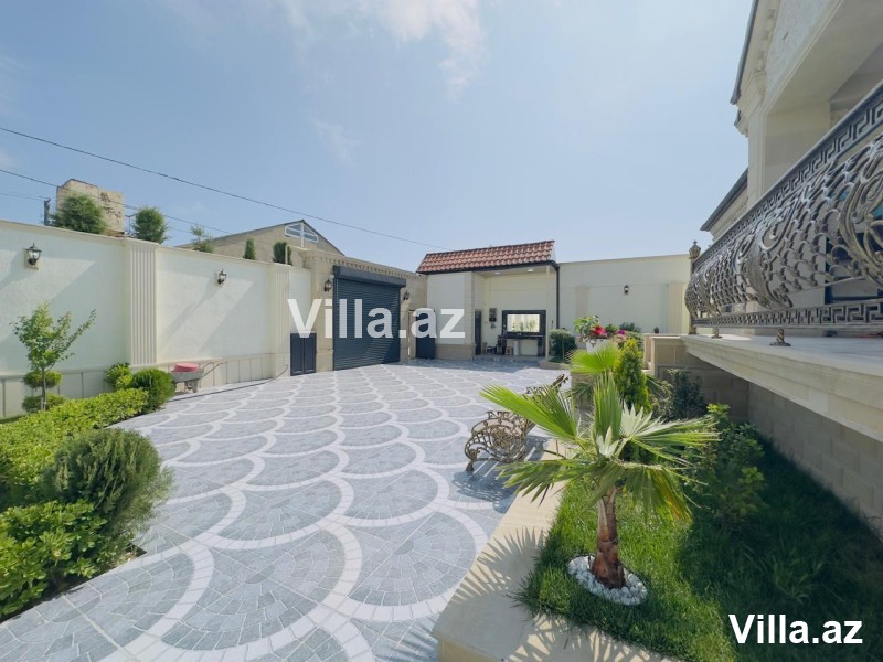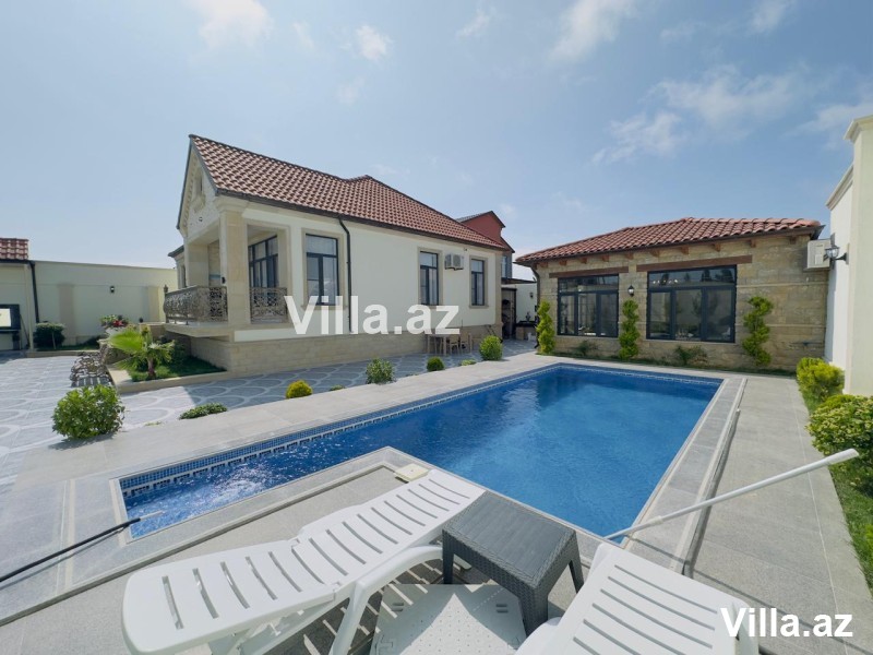 Mərdəkanda, 28 May küçəsində, əsas yoldan cəmi 50 metr içəridə yerləşən, Toskana üslubunda inşa edilmiş 1 mərtəbəli, 5 otaqlı (1 zal, 4 yataq otağı, 1 mətbəx, 3 sanitar qovşağı) modern villa satılır. Torpaq sahəsi 6.5 sot, yaşayış sahəsi 160 m²-dir. Villa şəxsi istifadə üçün yüksək keyfiyyətlə tikilib, tam monolit beton konstruksiyaya malikdir. Evin dam örtüyü kiremitlə, həyəti isə travertin daşlarla örtülüb. İçərisi tam əşyalıdır – mebel və məişət texnikası, parket döşəmə, isti pol, kombi istilik sistemi, otaqlarda kondisionerlər, əlavə zirzəmi və su qızdırıcısı mövcuddur. Həyətdə filterli hovuz, manqalxana, besedka, 4 tonluq su çəni, sanitar qovşağı, işıqlandırma sistemləri, dekorativ ağaclar, sensorlu gecə-gündüz işıqlandırma, pultla idarə olunan darvaza və kamera müşahidə sistemi mövcuddur. Qaz, işıq, su daimidir. Sənədlər tam qaydasındadır – kupça, torpaq və ev sənədi var.