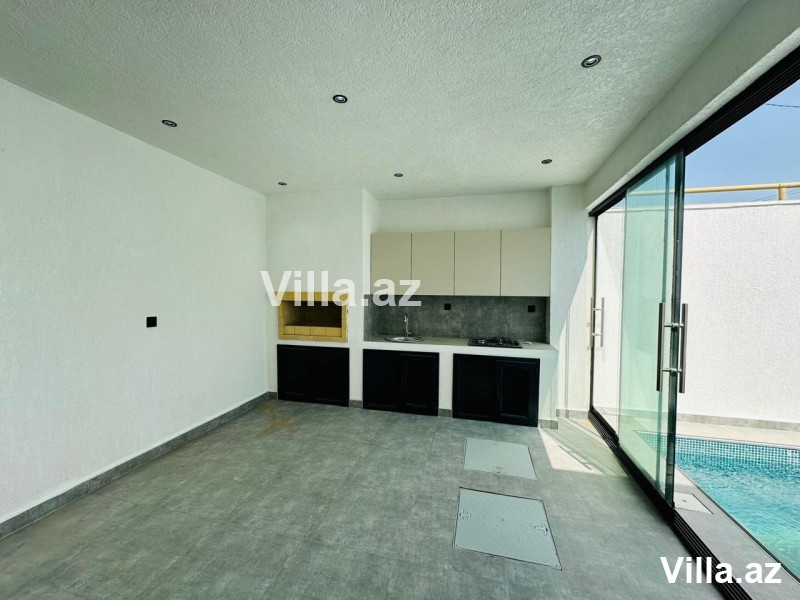 Mərdəkan villa massivində yeni modern ev satılır. İbo market ətrafında inşa edilmiş yeni villa 3.5 sot torpaq sahəsində, 1 mərtəbəli, 160 m²-dir. Evdə 1 zal, mətbəx, 3 yataq otağı və 2 sanuzel mövcuddur. Həyətində hovuz, manqal, cambalkonlu bisetka, əlavə mətbəx və sanuzel, dekorativ ağaclar, işıqlandırma sistemi və uzaqdan idarə olunan darvaza var. Qaz, işıq və su daimidir. Sənəd: Kupça Ətraflı məlumat üçün bizimlə əlaqə saxlayın.